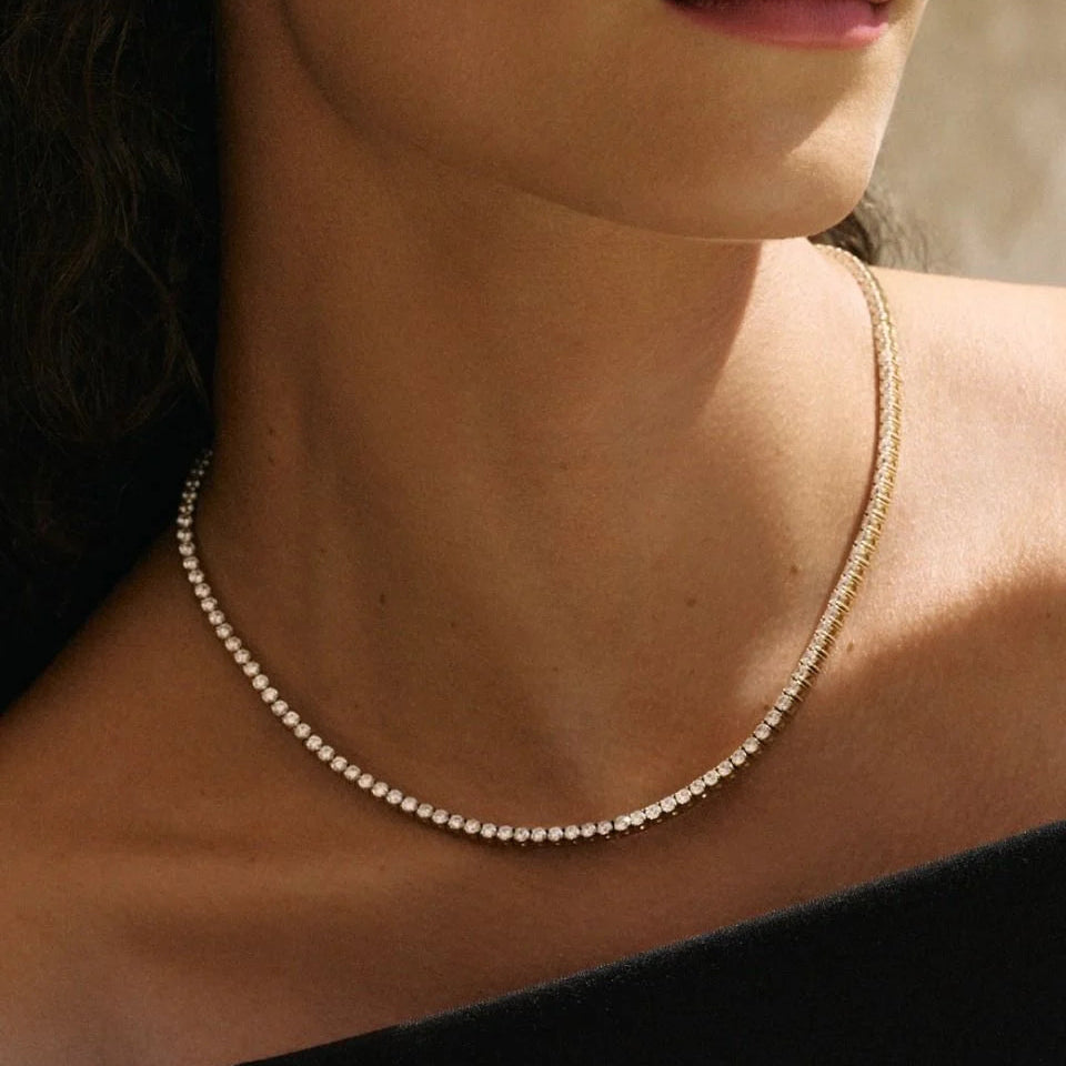 Unser Tennisarmband ist eine Hommage an das klassische Armband, das berühmt wurde, als die Profi-Tennisspielerin Chris Evert ihr Armband während eines wichtigen Spiels verlor. Seitdem ist dieser elegante Stil aus der Welt des Schmucks nicht mehr wegzudenken.