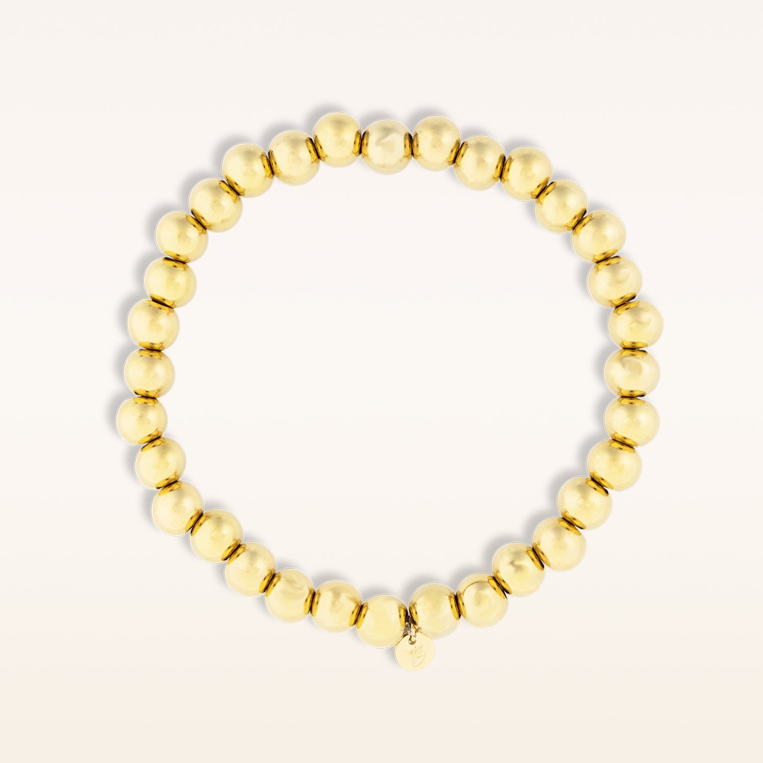 Unser Bestseller aus 10 mm Kugeln mit 14k Vergoldung auf Edelstahl. Elegant in seiner Einfachheit. Für ein schönes, volles Handgelenk kombinieren Sie es mit dem 12-mm-Goldauge- oder Mix-up-Armband