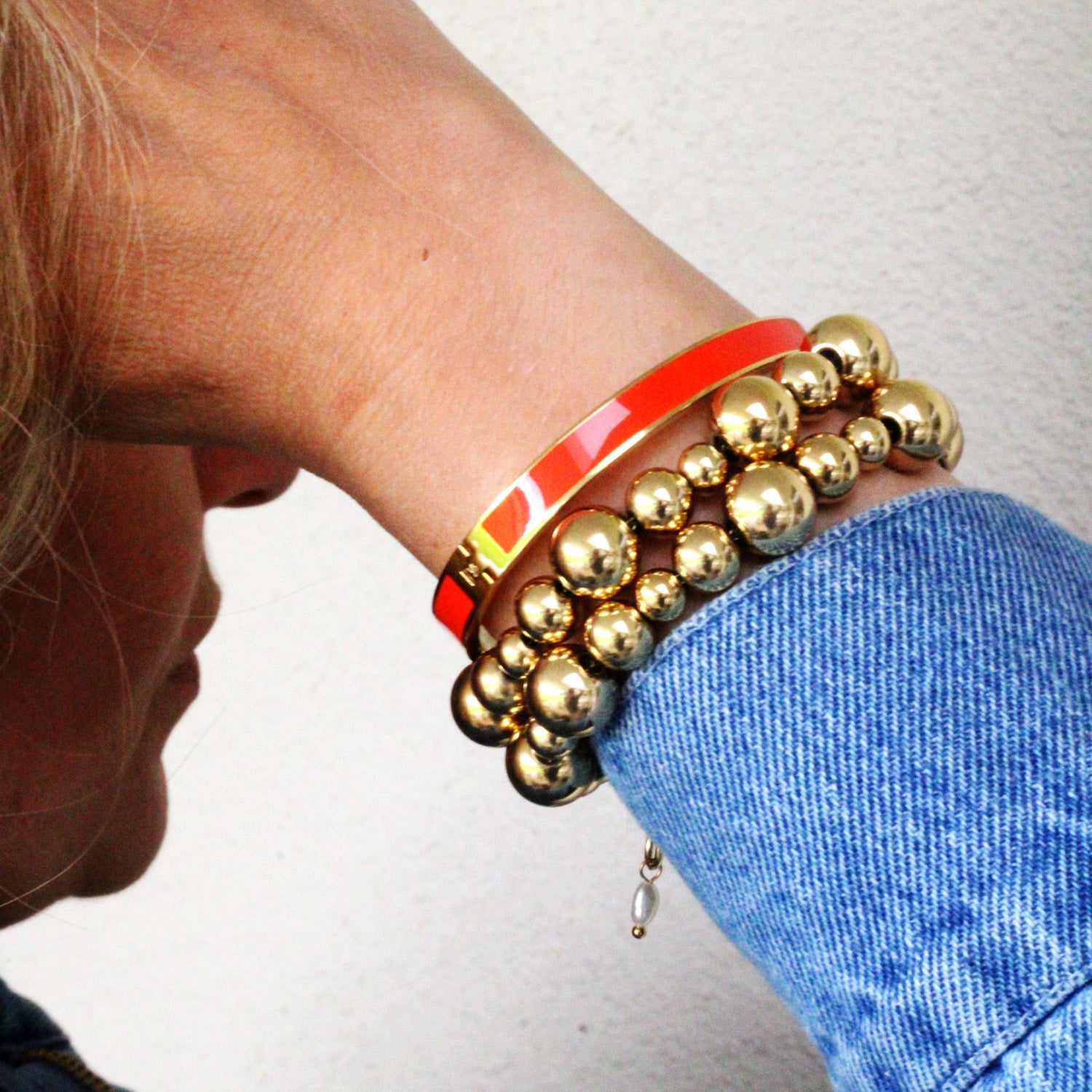 This orange colored bracelet is the trend color of the moment. Combine with the other Gina bracelets for a cheerful look