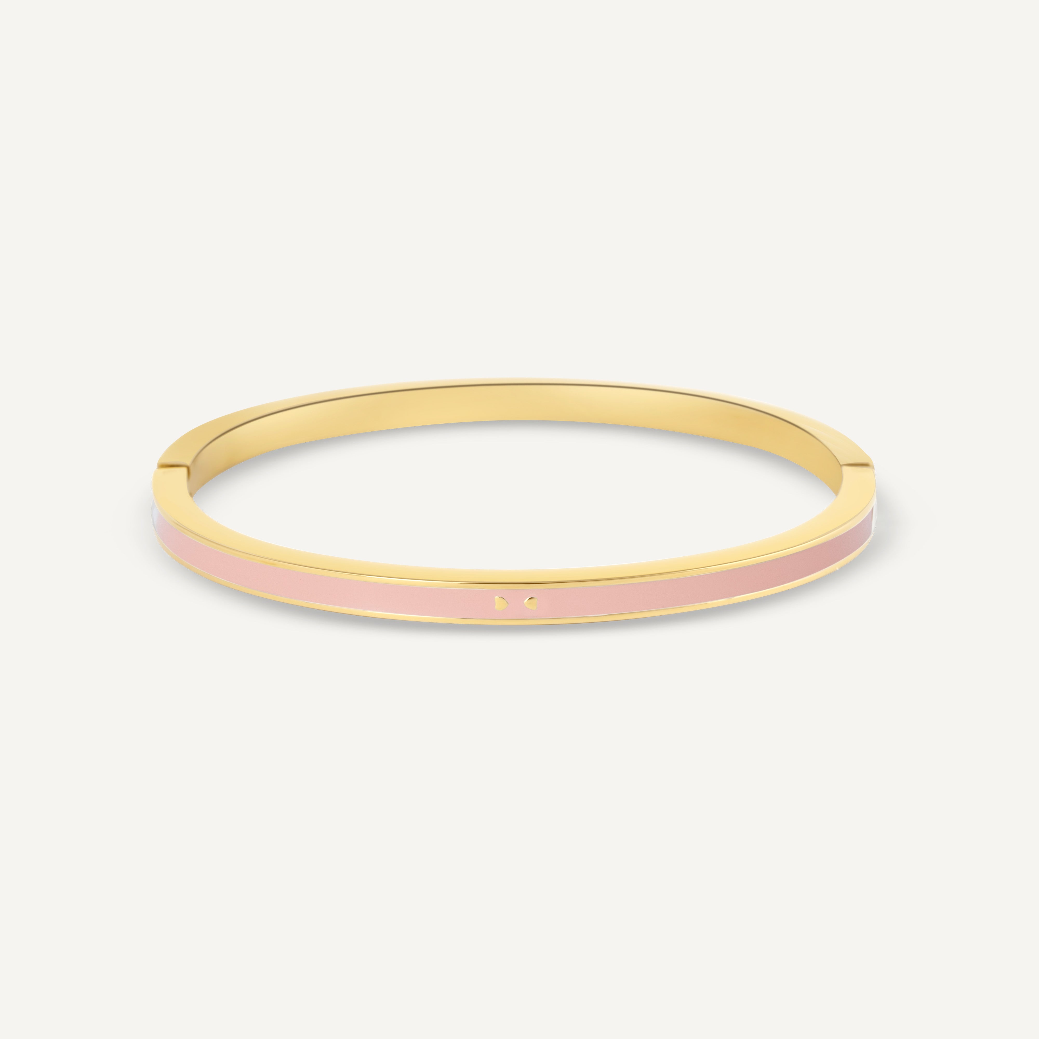 Laissez briller votre amour avec les Amour Bangles , des bracelets raffinés avec deux cœurs délicats gravés sur le devant. Disponible en quatre teintes pastel douces et seulement 4 mm de large. Ces bracelets plaqués or 14 carats sont parfaits pour être mélangés et assortis - portez-les ensemble, avec vos bijoux préférés, ou mélangez-les avec notre collection. Grâce à leur fermeture élégante, ils sont aussi pratiques qu'élégants.