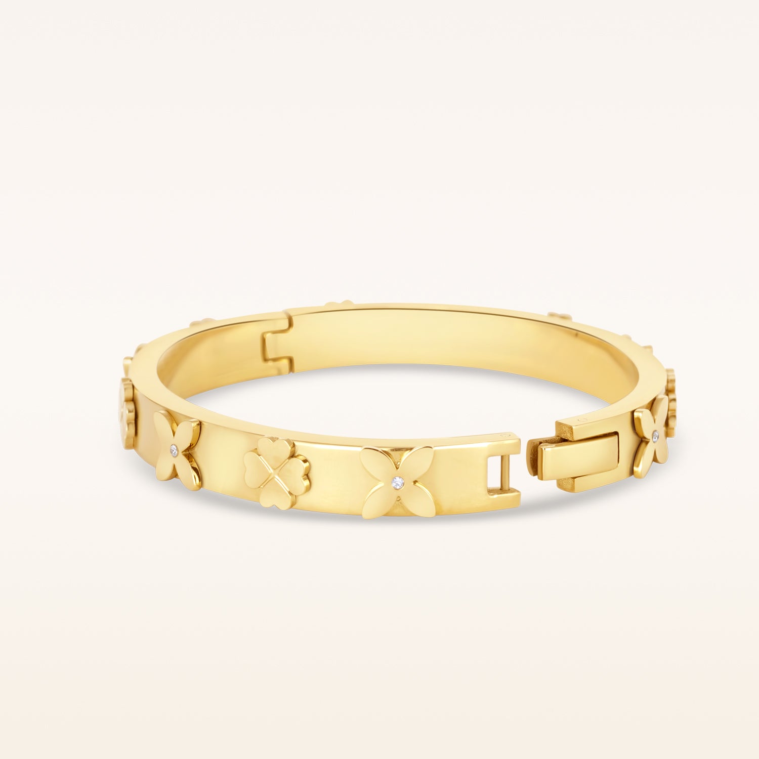 Aurélie : Un jonc entièrement plaqué or avec des pierres de zircones rayonnantes qui ajoutent une touche de glamour.