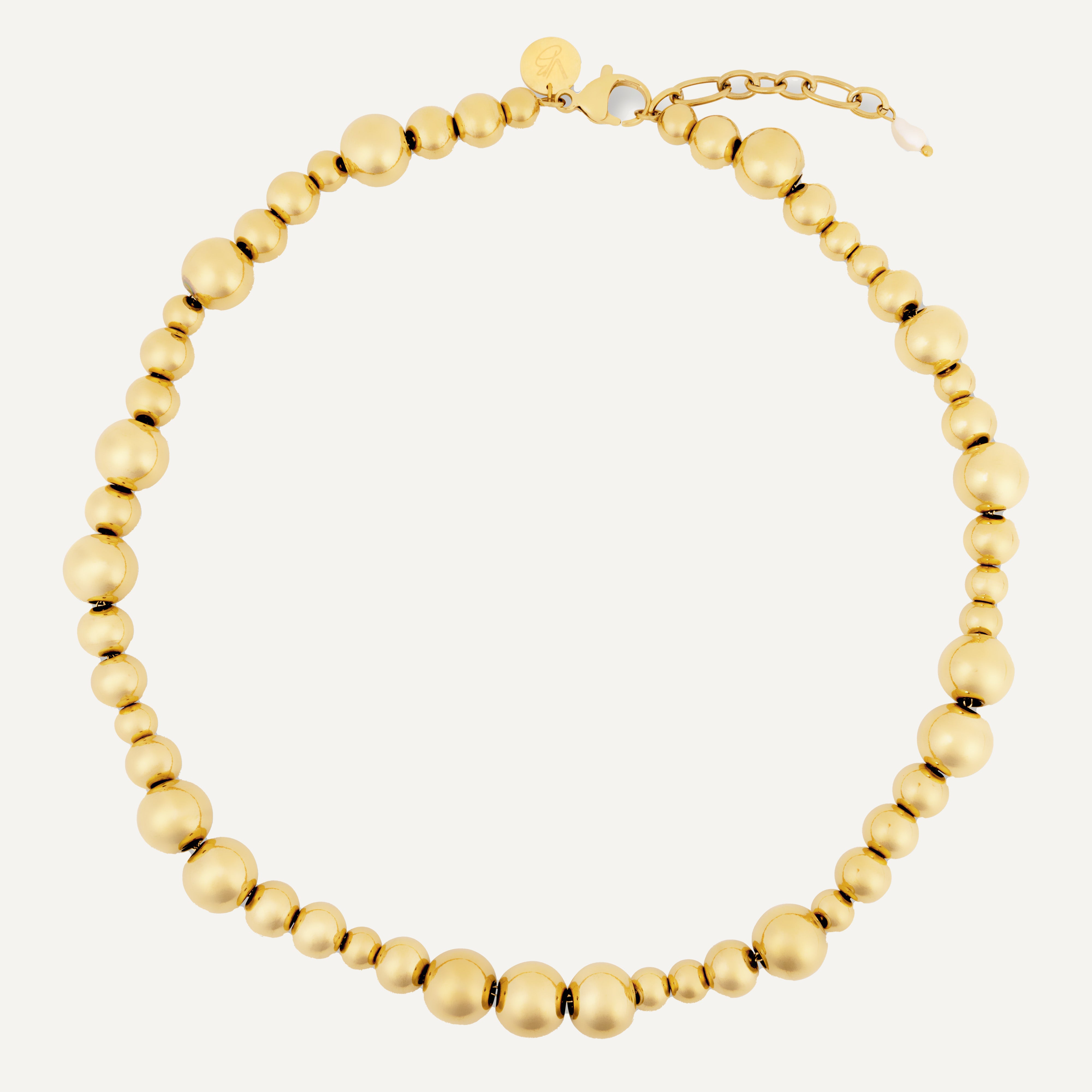 Een bestseller van gemixte bolletjes 14k verguld staal. Elegant doordat hij van iedere zijde een andere look heeft. Basic maar zeer stijlvol. Deze ketting is een echte eye-catcher